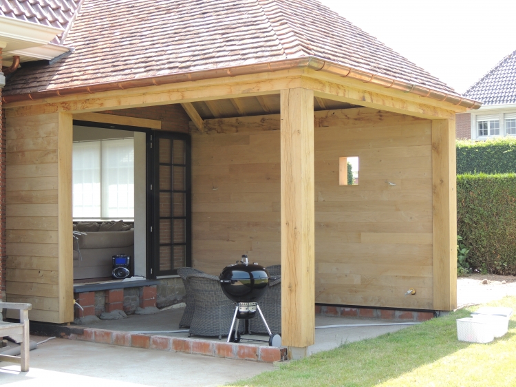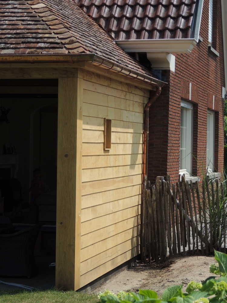 Verbouwing villa met aansluiting raamgeheel naar open eiken bijgebouw.
