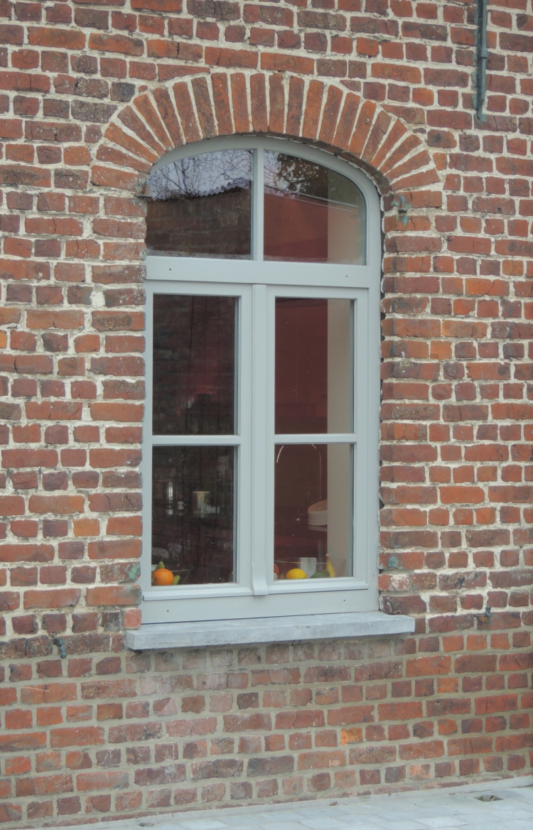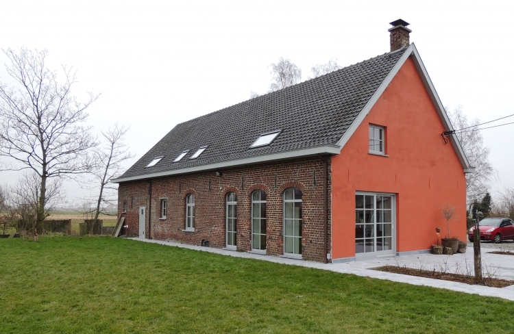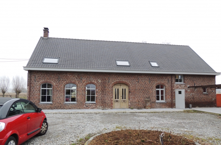 Volledig gerenoveerde hoeve te Beselare , waarbij de kapconstructie vernieuwd werd en nieuw buitenschrijnwerk in Sipo geschilderd en een gerestaureerde grenen voordeur in nieuw kozijn werd geplaatst.