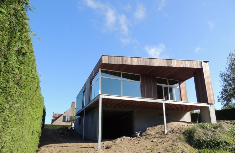 Volledig herbouwde woning in houtskeletstructuur vanaf kelderverdieping.