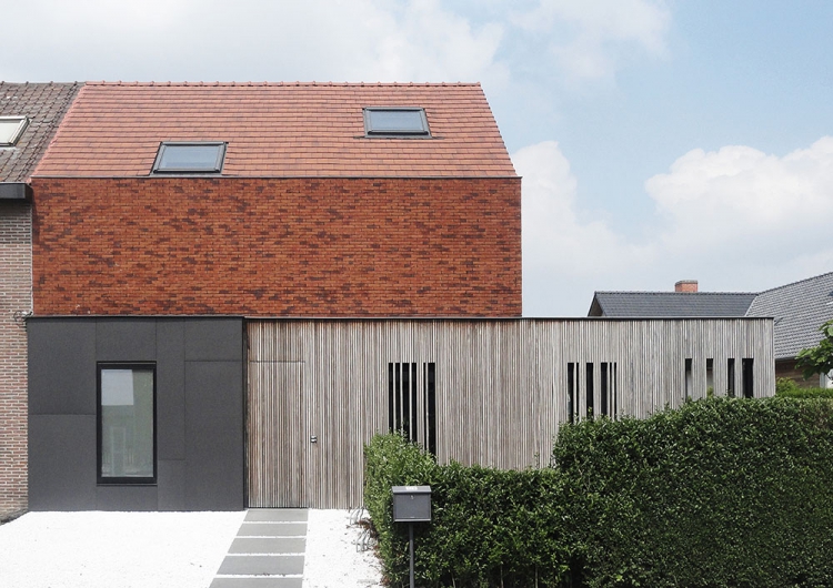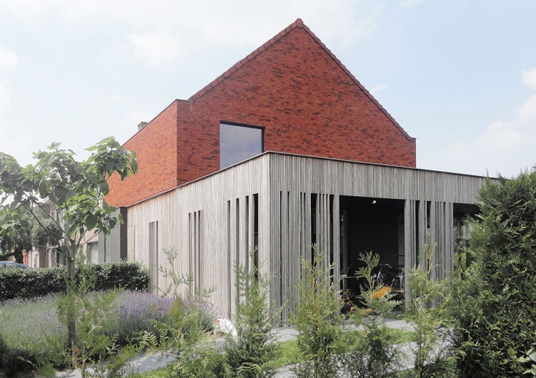 Deze halfopen houtskelet bevat een ééngezinswoning en een kinesistenpraktijk. Cruciaal in het ontwerp is de strikte scheiding tussen de praktijk en de privéruimtes. Binnen de woning is er eveneens een opdeling tussen het dag- en nachtgedeelte. De opdeling wordt zowel in vorm als materiaal sterk gescheiden wat meteen het concept en de leesbaarheid van het project vormt.