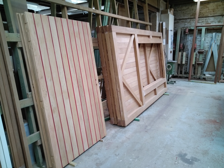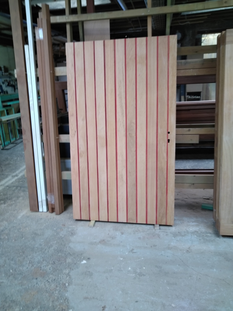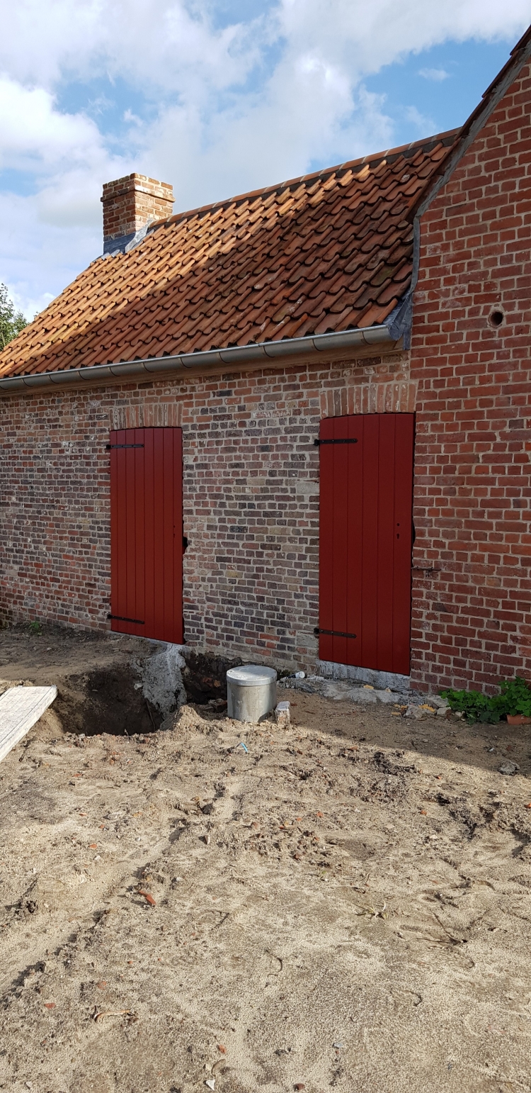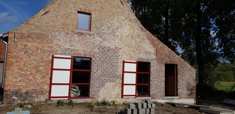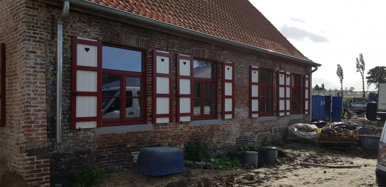 Nieuw renovatieschrijnwerk in afzelia doussie in de authentieke kleuren ( rood-wit )